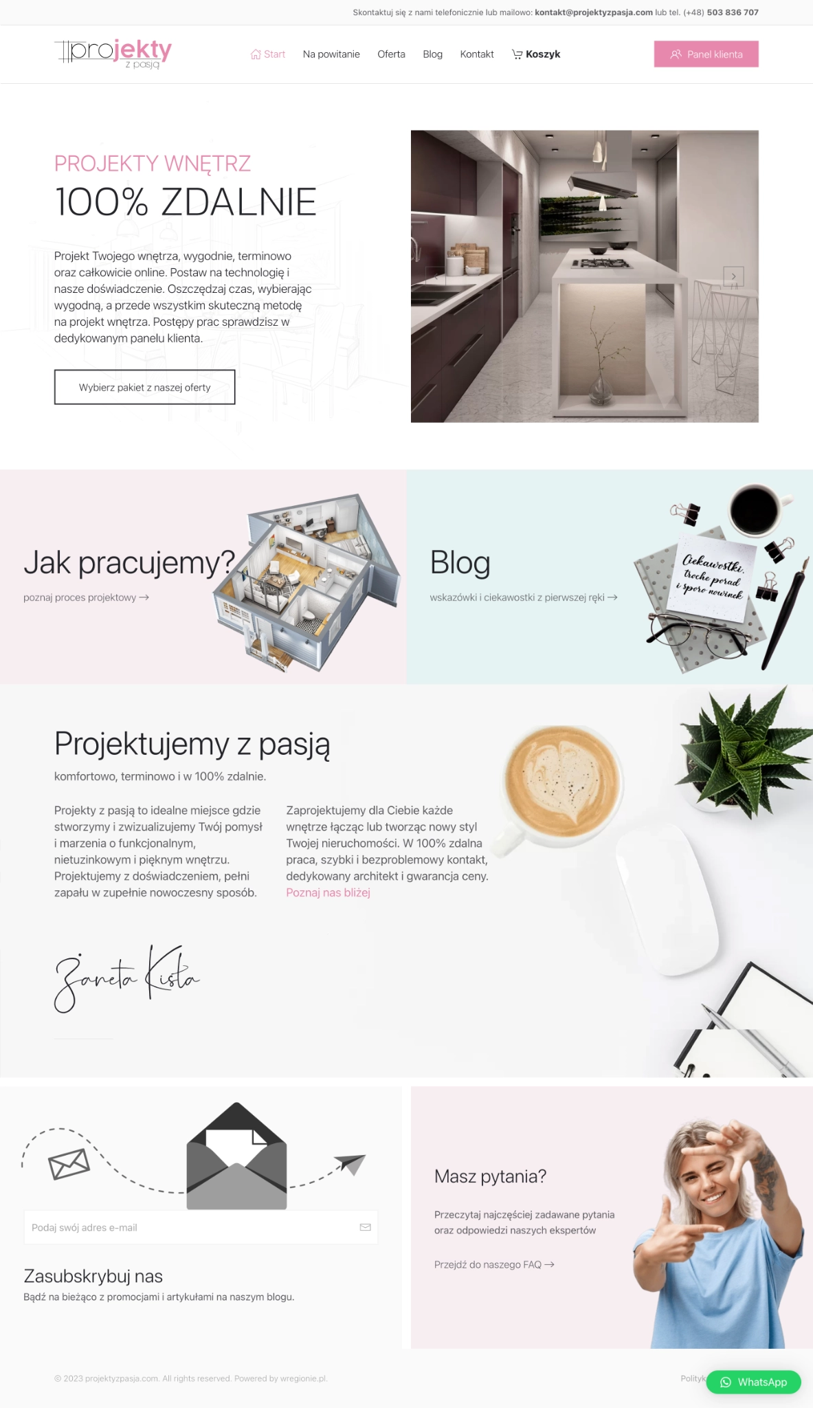 Zaprojektowaliśmy i wdrożyliśmy kompleksową stronę internetową dla firmy specjalizującej się w projektowaniu wnętrz oraz renderowaniu fotorealistycznych obrazów. Wykonaliśmy oryginalny layout, przygotowaliśmy grafikę i logo, a także stworzyliśmy angażujące treści i opisy. Zainstalowaliśmy i skonfigurowaliśmy system zarządzania treścią (CMS), dodając funkcje, takie jak koszyk zamówień i formularze kontaktowe, aby ułatwić interakcję użytkownikom. Stworzyliśmy dedykowany panel klienta, a także zintegrowaliśmy stronę z mediami społecznościowymi oraz WhatsApp.